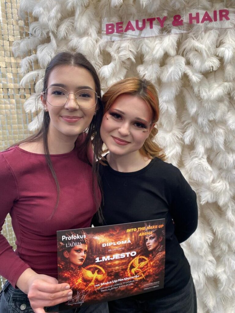 U tako jakoj konkurenciji učenici naše škole ostvarili su odlične rezultate – osvojeno je 1. i 3. mjesto u šminkanju, 2. mjesto u uređivanju noktiju te 3. mjesto u muškom šišanju.