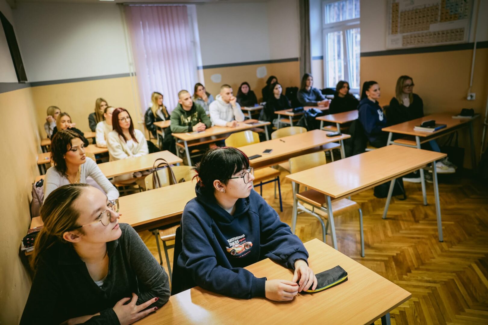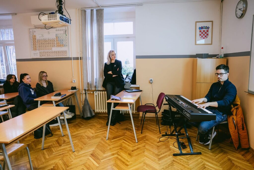Matija Dedić bio je jedan od omiljenih glazbenika hrvatske jazz scene, a njegove izvedbe i skladbe ostaju trajno nasljeđe budućim generacijama. Njegovi dugogodišnji kolege i prijatelji iz Jazz orkestra Hrvatske radiotelevizije pripremili su koncert u njegovu čast, koji su 10.2.2026. pohodili i učenici Obrtničke škole za osobne usluge, uz pratnju profesorice Darije Šćukanec. Uvod u jazz improvizaciju i Matijin glazbeni svijet, učenicima je u 3.a razredu predstavio jedan od solista koncerta Petar Ćulibrk, uz muzikologinju Srđanu Vrsalović. Više o projektu Behind The Scenes Hrvatskog društva skladatelja možete pročitati na https://www.hds.hr/projekt/behind-the-scenes/